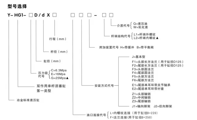 4)按照以上三條,可按照以下YHG1油缸型號(hào)說明,明確您需要的型號(hào);